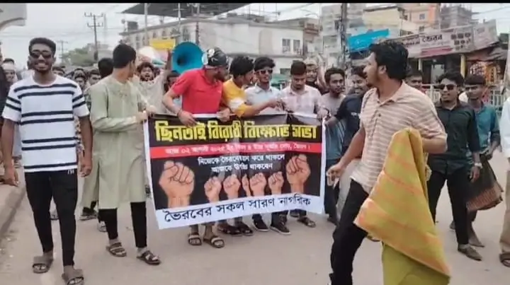এ ঘটনার জের ধরে বিকাল চারটায় বিক্ষোভ সমাবেশ করেন ভৈরবের ছাত্র ও যুব সমাজের নেতাকর্মীরা।
