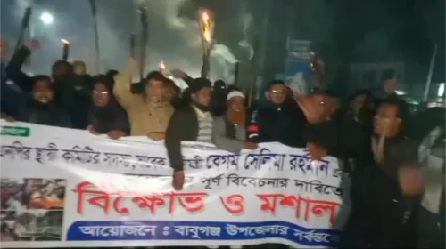 বিএনপি থেকে সেলিমা রহমানকে মনোনয়ন না দেওয়ার প্রতিবাদে বাবুগঞ্জে মশাল…