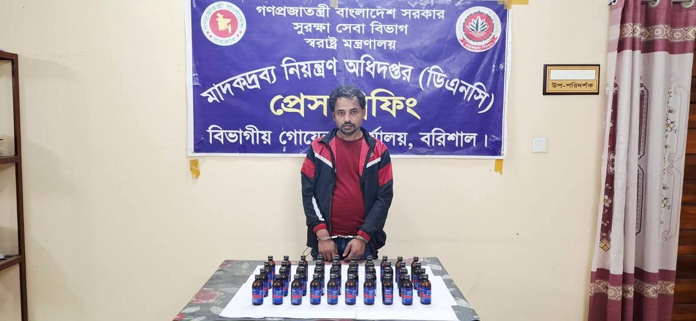 মাদকদ্রব্য নিয়ন্ত্রণ অধিদপ্তরের সূত্রে জানা যায়, গোপন সংবাদের ভিত্তিতে ঢাকা-বরিশাল মহাসড়কের উজিরপুর থানাধীন ইচলাদী টোলপ্লাজার পাশে একটি প্রাইভেটকারে তল্লাশি চালানো হয়। এ সময় গাড়িটি থেকে ৪০ বোতল ফেনসিডিল উদ্ধার করা হয় এবং মো. রায়হান (৩৫) নামে এক ব্যক্তিকে আটক করা হয়।